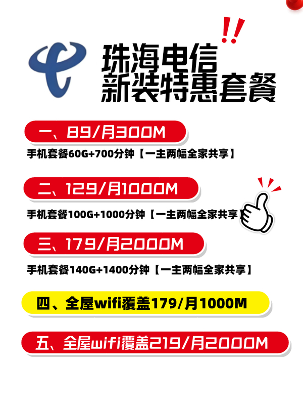珠海电信宽带价格表